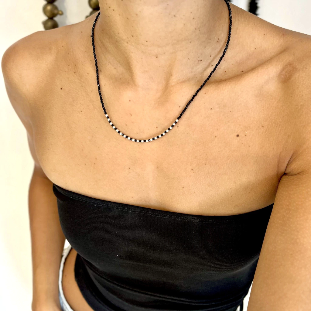 Collar Elegante de Piedras Facetadas negras en piedra y esferas de Plata 925